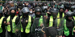 Deben mostrar una cara fuerte, seria. La vida como policía las ha marcado de buena forma, han visto de todo; otras mujeres tienen cara de niña, apenas llevan 15 días en el agrupamiento Atenea y su primer servicio fuerte fue esta marcha.