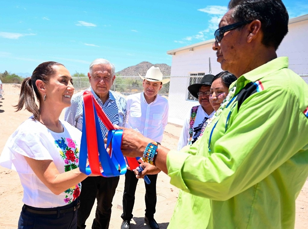 Desde este punto de la geografía sonorense, cercano al Golfo de California — antes Mar de Cortés—, Sheinbaum Pardo expresó su compromiso para continuar con este plan y tomó nota para la pavimentación de tres caminos que previamente, a nombre de los pobladores, pidió Gabriela Moreno, autoridad de la etnia.