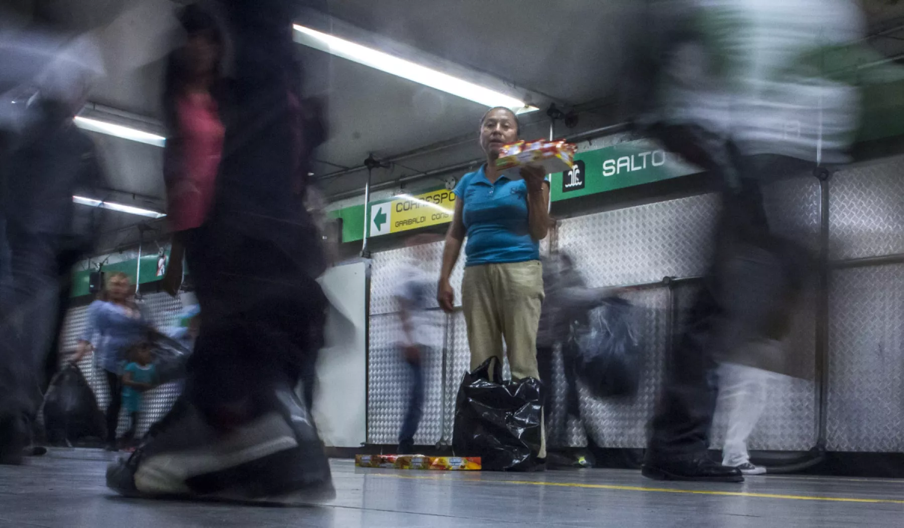 Aunque en las instalaciones del STC hay presencia policiaca, algunos comerciantes logran burlar los filtros y expenden su mercancía sin problema, incluso afuera de los convoyes, en áreas como los pasillos de correspondencia. Es el caso de la estación Chabacano, en el transbordo a la línea 8, donde una mujer ofrece churros con azúcar en una canasta de plástico a 15 pesos el par.